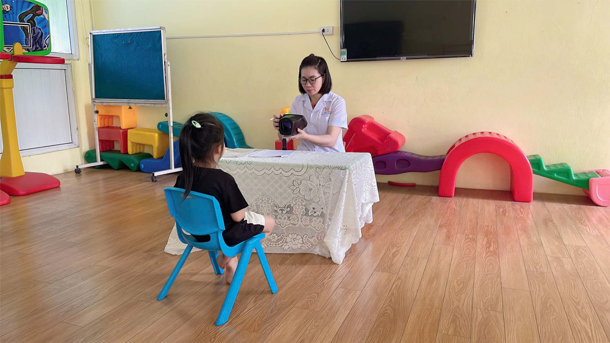 Ngày 22/10/2025, Trường mầm non Long Biên phối hợp với MẮT SÁNG VIỆT NAM - Triển khai đo sàng lọc tật khúc xạ mắt cho học sinh định kỳ 06 tháng/ lần tại trường để 100% học sinh có cơ hội được kiểm tra mắt giúp bố mẹ nắm rõ tình hình tiến triển chỉ số mắt của con. Chương trình được thực hiện bởi đội ngũ Y - Bác sỹ chuyên nghiệp, tận tâm cùng các trang thiết bị hiện đại, góp phần phát hiện nhanh chóng và chuẩn xác các vấn đề về mắt trên từng trẻ. Sau khi khám mỗi bạn sẽ có 1 tờ kết quả riêng gửi về gia đình và rất nhiều ưu đãi trong phiếu đã thể hiện.Từ đó, phụ huynh có những can thiệp kịp thời bảo vệ tối đa đôi mắt cho bé.