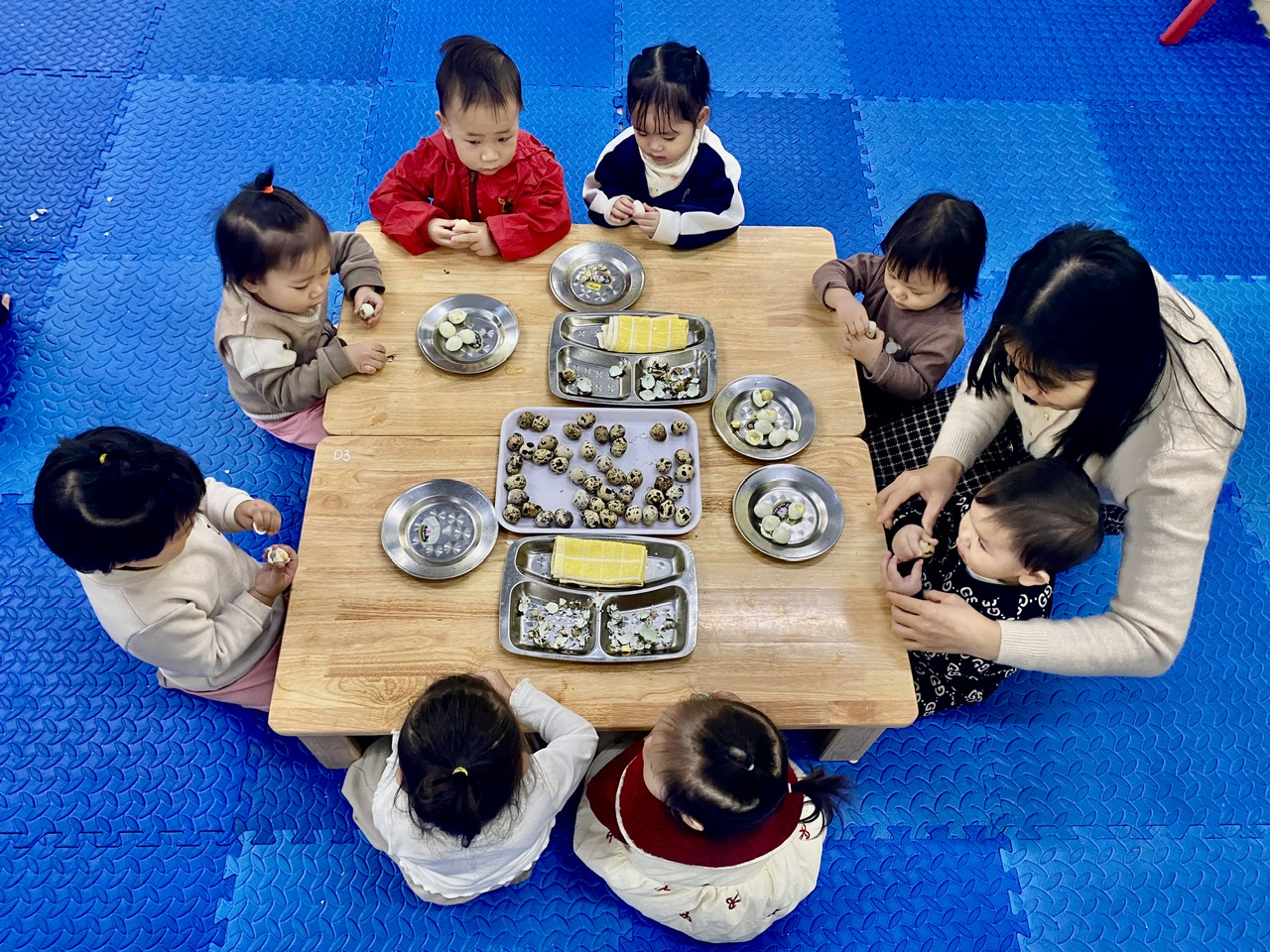 “ Bóc trứng chim cút” là một hoạt động tuy đơn giản nhưng mang lại sự trải nghiệm vô cùng thú vị giúp trẻ rèn luyện sự khéo léo của những ngón tay, sự tỷ mỉ giúp rèn luyện tính kiên trì.