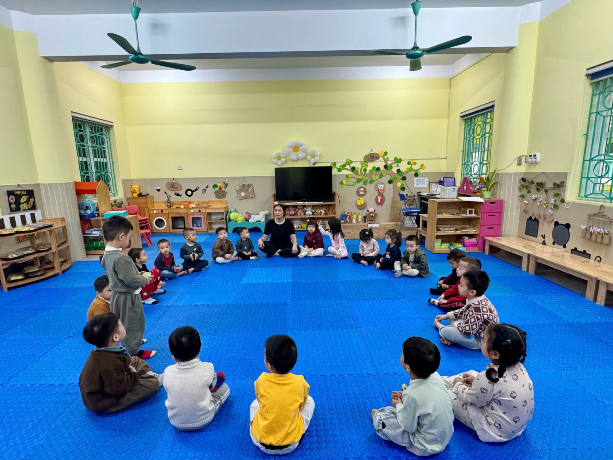 Giờ hoạt động góc vui nhộn của các bạn nhỏ lớp mẫu giáo Bé C2 tại trường mầm non Long Biên