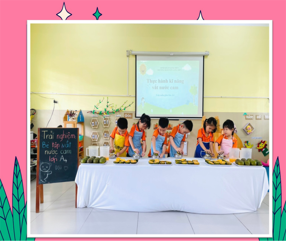 Nước cam là một đồ uống mà hầu hết các bé đều yêu thích. Nhưng làm thế nào để có một cốc nước cam nhỉ? Điều đó thực sự gây tò mò và hứng thú. Hôm nay các cô giáo đã cùng các bé lớp mẫu giáo lớn A4 có buổi trải nghiệm kỹ năng vắt cam.