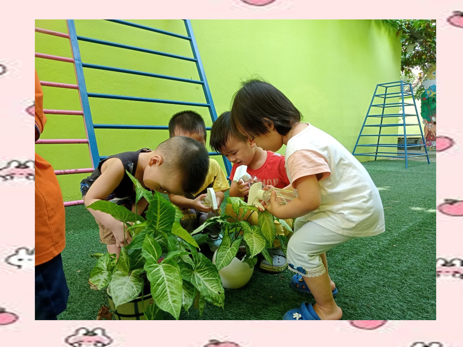 Thông qua hoạt động lao động, chăm sóc cây, đòi hỏi trẻ phải tỉ mỉ, khéo léo từ đó phát triển cho trẻ tố chất kiên trì, làm việc có mục đích, giúp trẻ nắm được một số kỹ năng lao động đơn giản, hình thành các quan hệ tập thể trong lao động. Hoạt động chăm sóc cây cảnh trong sân trường sẽ giúp trẻ được khám phá thiên nhiên, được tự mình trải nghiệm, tìm tòi khám phá nhiều điều kỳ thú, qua đó trẻ được trực tiếp nhìn thấy hiện tượng tự nhiên trong môi trường sống với tất cả những mối quan hệ và sự phụ thuộc lẫn nhau. Trẻ được dạo chơi thoải mái tạo ra sự vui sướng, thỏa mãn khi được tiếp xúc với môi trường xung quanh. Tất cả lớp đều thực hiện hoạt động cách chăm sóc cây cảnh ở góc thiên nhiên của lớp mình, các bồn cây xung quanh sân trường… Các bé đều hào hứng, vui vẻ tham gia.