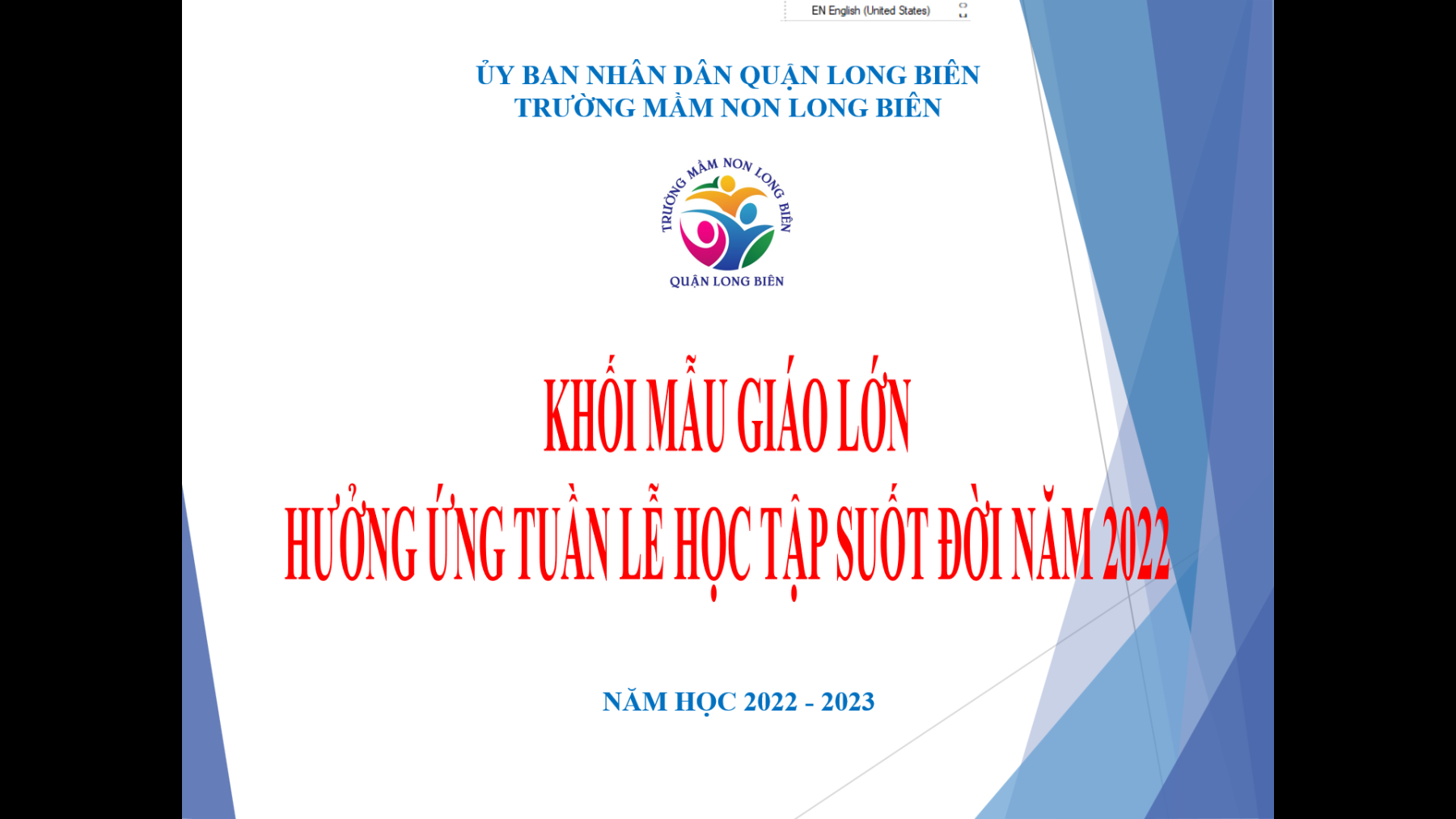 Hưởng ứng tuần lễ học tập suốt đời năm 2022, Ban giám hiệu trường mầm non Long Biên đã chỉ đạo các khối, lớp tổ chức các hoạt động thiết thực, ý nghĩa để hưởng ứng tuần lễ. Giáo viên khối mẫu giáo lớn tích cực tham gia hưởng ứng bằng các hoạt động hàng ngày như: Đẩy mạnh ứng dụng CNTT vào các hoạt động tạo điều kiện cho trẻ được sử dụng công nghệ số trong hoạt động học tập.