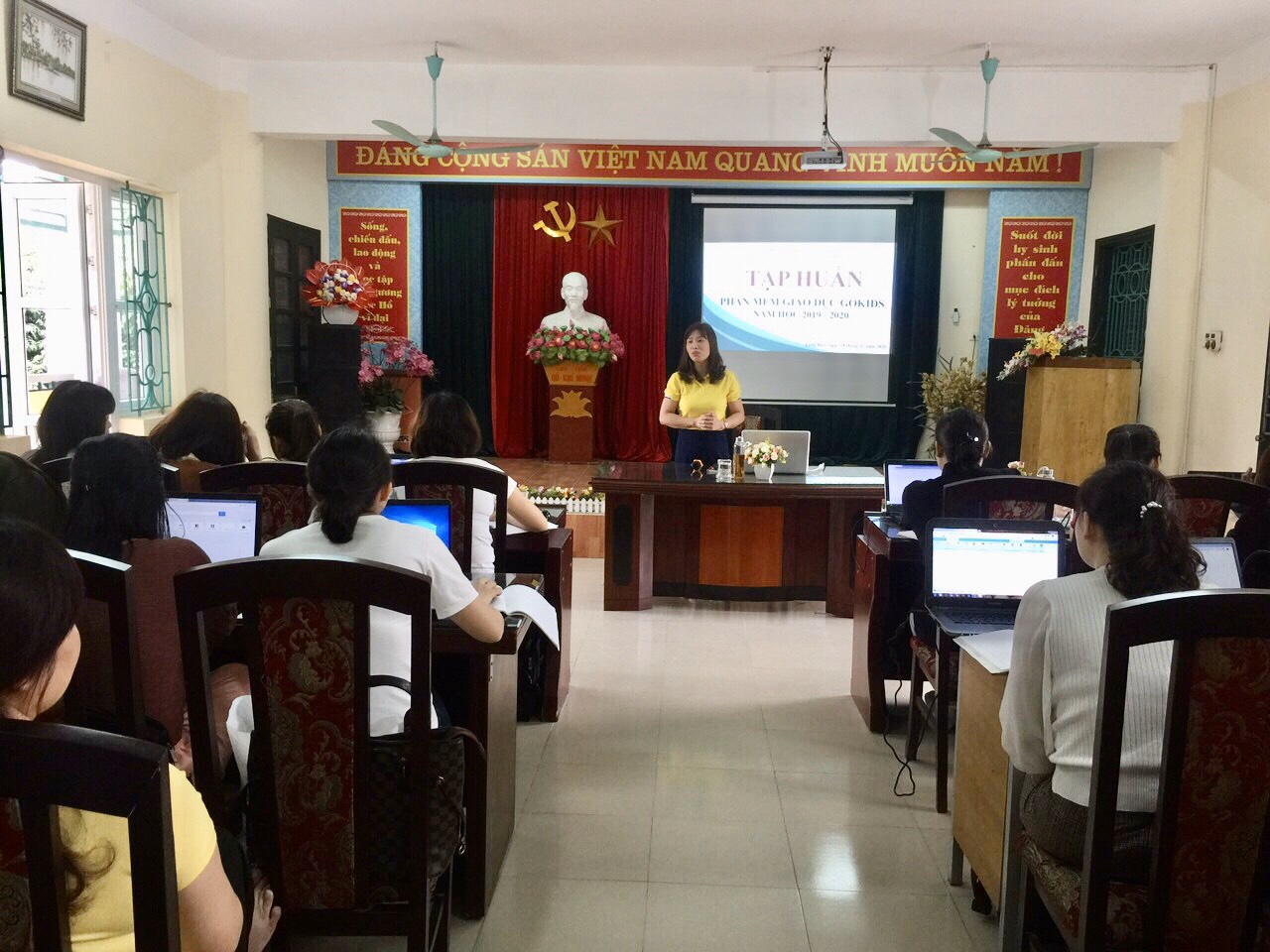 Trong thời gian này, bên cạnh nhiệm vụ quan trong là vệ sinh trường lớp để phòng chống dịch bệnh COVID -19, và chuẩn bị tâm thế để đón trẻ quay lại trường học, trường mầm non Long Biên cũng luôn chú trọng đến việc tổ chức các buổi sinh hoạt chuyên môn cho giáo viên – nhân viên nhà trường. Một trong các buổi sinh hoạt chuyên môn đó là buổi tập huấn về phần mềm giáo dục GoKids của tổ chuyên môn cho đội ngũ giáo viên.