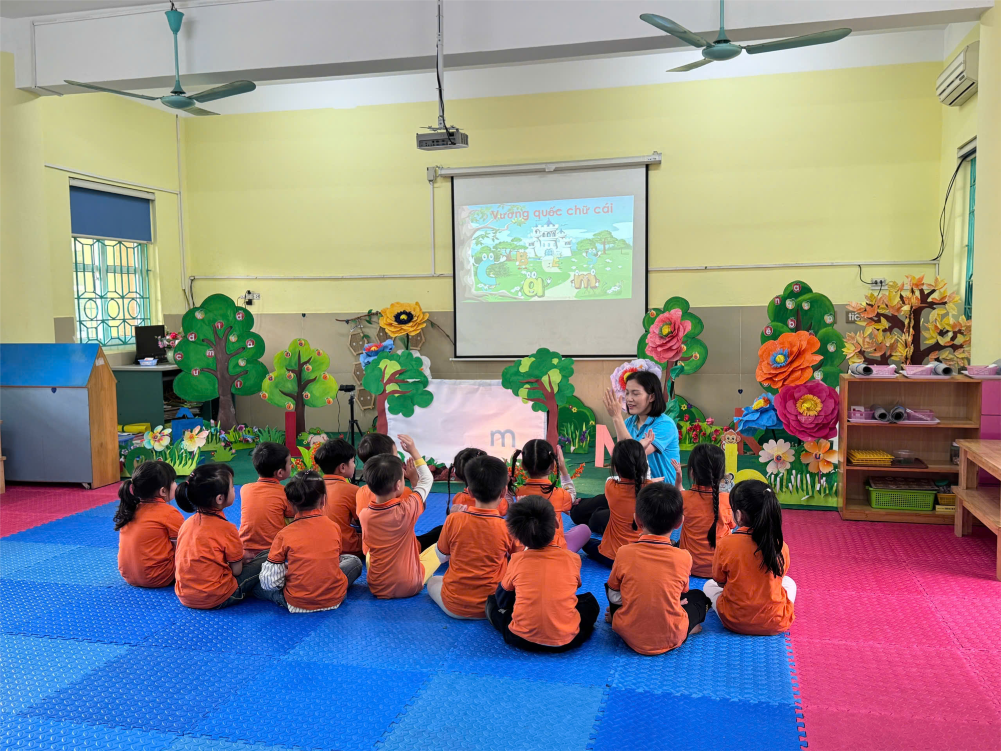 Trong buổi kiến tập, giáo viên thực hiện hoạt động giảng dạy ứng dụng theo phương pháp Montessori với các giáo cụ trực quan như bảng chữ cái cát, thẻ chữ, mô hình ghép chữ và các trò chơi sáng tạo. Trẻ được khuyến khích tự do khám phá, trải nghiệm và thực hành viết chữ trên các bề mặt khác nhau, từ đó nâng cao kỹ năng nhận diện, phát âm và viết chữ một cách hiệu quả.
