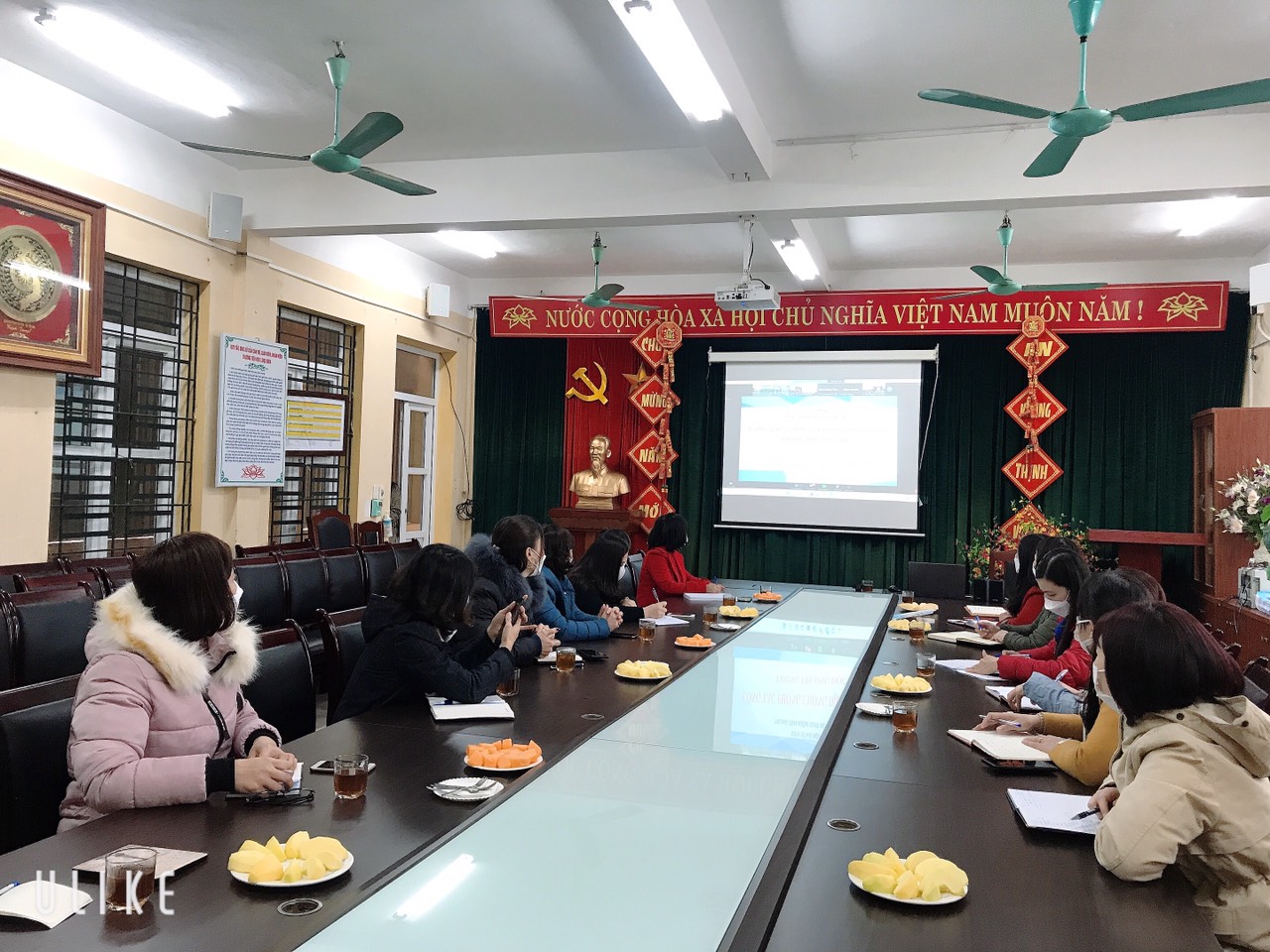 Thực hiện chỉ đạo của Sở GD&ĐT Hà Nội về việc tổ chức điểm cầu tham dự Hội nghị trực tuyến về công tác phòng chống dịch Covid-19 trong trường học khi đón học sinh trở lại trường học học trực tiếp.14h00 ngày 09/02/2022, đại diện ban giám hiệu, đại diện tổ giáo viên, nhân viên y tế Trường mầm non Long Biên tham dự Hội nghị trực tuyến về công tác phòng chống dịch Covid-19 trong trường học khi đón HS trở lại học tập tại điểm cầu trường Tiểu Học Long Biên.Tất cả đại biểu tham dự Hội nghị đều thực hiện “5K” và các quy định về công tác phòng, chống dịch Covid-19.