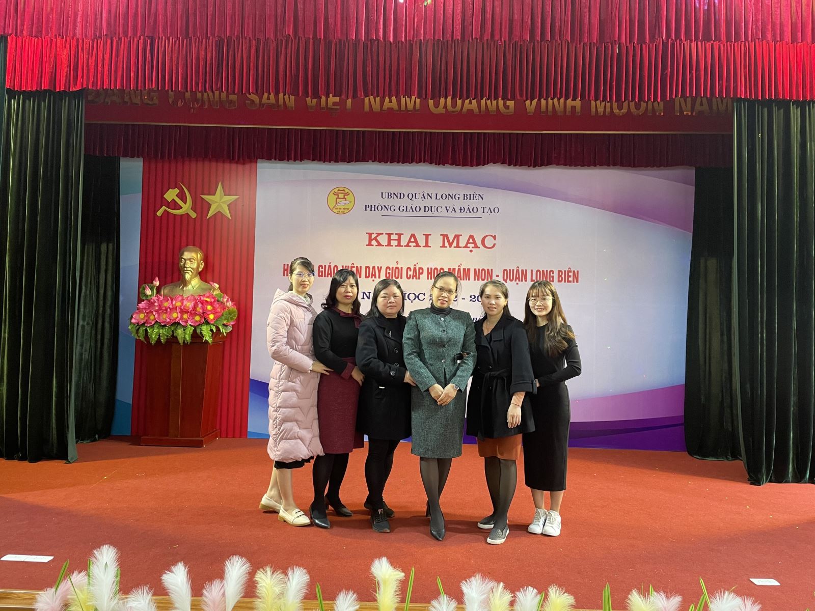 Sáng ngày 09 tháng 12 năm 2022, đồng chí Hiệu trưởng, chủ tịch công đoàn cùng 04 giáo viên trường mầm non Long Biên đã tham dự Lễ khai mạc Hội thi giáo viên dạy giỏi cấp học mầm non năm học 2022-2023 tại trường mầm non chất lượng cao Đô thị Việt Hưng. Phát biểu tại Lễ khai mạc, đồng chí Nguyễn Thị Hồng Vân - Phó Trưởng phòng Giáo dục và Đào tạo đã chỉ rõ mục đích, ý nghĩa, của Hội thi; khuyến khích động viên đội ngũ giáo viên cấp học mầm non học hỏi, trao đổi, phổ biến kinh nghiệm chăm sóc, giáo dục trẻ; là động lực thúc đẩy mạnh phong trào thi đua dạy tốt, góp phần nâng cao chất lượng giáo dục toàn diện trong các nhà trường. Đồng thời tuyển chọn, tuyên dương và nhân rộng những điển hình tiên tiến góp phần nâng cao chất lượng giáo dục mầm non và lựa chọn những gương mặt xuất sắc tham dự Hội thi giáo viên dạy giỏi cấp Thành phố. Để Hội thi đạt kết quả cao, đồng chí Phó Trưởng phòng Giáo dục và Đào tạo mong muốn các thành viên Ban giám khảo là người cầm cân nảy mực luôn sáng suốt, công bằng, chính xác, khách quan; đối với giáo viên dự thi phải thật bình tĩnh, tự tin và phát huy hết khả năng của mình để hoàn thành tốt nhất các phần dự thi.Tham gia Hội thi, các giáo viên phải trải qua 2 phần thi: phần thi thuyết trình và phần thi thực hành tiết dạy. Cụ thể, trong phần thi thuyết trình, mỗi giáo viên phải trình bày một biện pháp góp phần nâng cao chất lượng công tác giảng dạy của cá nhân tại cơ sở giáo dục, nơi giáo viên đang làm việc. Phần thi thực hành, mỗi giáo viên dự thi sẽ phải tổ chức thực hành dạy một tiết theo kế hoạch giảng dạy tại thời điểm diễn ra Hội thi.