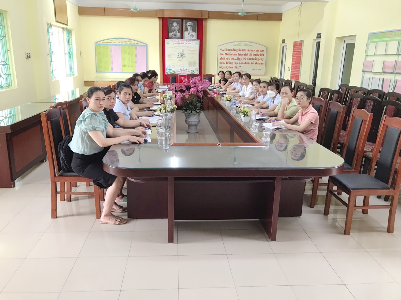 Sáng ngày 10/8/2022 tại điểm cầu trung tâm chính trị quận Long Biên, đ/c Đỗ Thị Thanh Nhâm - Bí thư chi bộ- Hiệu trưởng nhà trường cùng đ/c Trần Thị Thư Trang- Phó bí thư chi bộ- Phó hiệu trưởng đã tham gia trực tiếp “Lớp bồi dưỡng chính trị hè cho đội ngũ cán bộ quản lý và giáo viên các trường học trên địa bàn quận Long Biên năm 2022”. Tại điểm cầu nhà trường, 100% các đ/c cán bộ, giáo viên trường mầm non Long Biên đã có mặt đầy đủ, đúng giờ để tham gia lớp bồi dưỡng chính trị trực tuyến qua phần mềm zoom. Đây là dịp để cán bộ, giáo viên có cơ hội học tập nâng cao trình độ nhận thức, các đồng chí đã tham gia học tập nghiêm túc, ghi chép đầy đủ nội dung bồi dưỡng. Qua buổi học các đồng chí CB-Gv đã nắm bắt được mục tiêu chung, những đặc trưng của mô hình chủ nghĩa xã hội ở Việt Nam, phương châm phát huy quyền làm chủ rộng rãi của Nhân dân theo tinh thần Nghị quyết Đại hội XIII của Đảng từ đó mà nâng cao quyết tâm rèn luyện ý chí và khát vọng thực hiện nhiệm vụ công tác của bản thân vì sự phát triển nhà trường, nâng cao hiệu quả chăm sóc giáo dục, phát triển tính tích cực chủ động, sáng tạo của trẻ.