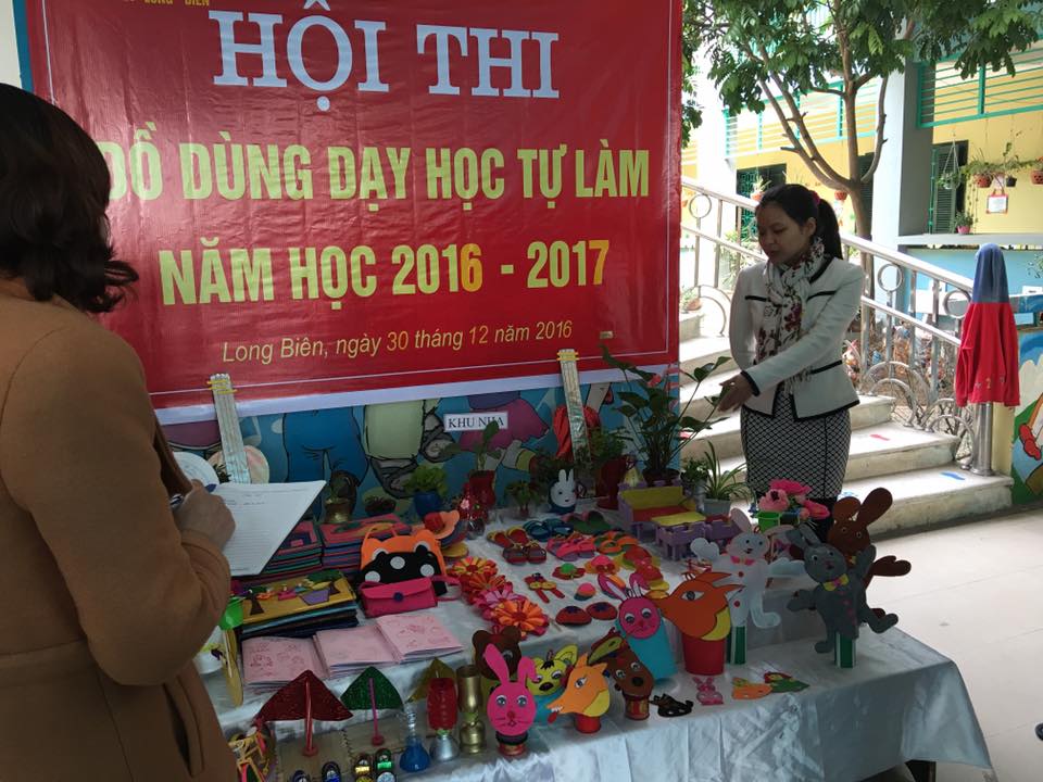 Sáng ngày 30/12/2016 trường mầm non Long Biên tổ chức hội thi “ Đồ dùng dạy học tự làm cấp trường” năm học 2016 - 2017. Hội thi được phát động rộng rãi trong tập thể giáo viên và nhận được sự ủng hộ, hưởng ứng nhiệt tình của 100% giáo viên với 19 lớp trong nhà trường tham dự. Từ những nguyên liệu, phế liệu dễ kiếm trong đời sống hàng ngày với đôi bàn tay khéo léo, sức sáng tạo và lòng nhiệt huyết yêu nghề mến trẻ, các cô giáo trường mầm non Long Biên đã tạo nên những sản phẩm đẹp mắt, có tính giáo dục khoa học và thẩm mỹ. Những bộ đồ dùng tự làm này có tính ứng dụng cao có thể phổ biến rộng rãi và rất phù hợp với lứa tuổi mầm non trong các hoạt động giáo dục. Đặc biệt là bộ đồ chơi đôminô với những bài tập hay hấp dẫn kích thích tính sáng tạo và tư duy cho trẻ, bộ đồ khung rối đa năng thuận tiện dễ sử dụng với các nhân vật rối vô cùng ngộ nghĩnh, bộ đồ dùng phát triển thể chất, bộ dụng cụ âm nhạc hay bộ đồ dùng thực hành cuộc sống đã giúp các bé học làm các công việc đơn giản như: tự kéo khoá áo, luồn dây giầy, tết tóc, xâu hoa, cài khuy áo…. .