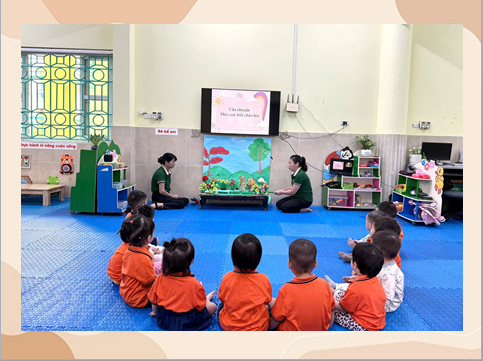 Đối với trẻ 24- 36 tháng trẻ thích những câu chuyện cổ tích có ông Bụt, bà Tiên hiện nên giúp đỡ những người hiền lành nhưng nghèo khổ, thích các nhân vật như bác gấu, bạn thỏ…. Những bài thơ mang tính giáo dục yêu ông bà, cha mẹ, yêu thiên nhiên, quê hương, đất nước. Hiểu được tâm lý đó giáo viên lớp nhà trẻ D2 đã xây dựng các hoạt động làm quen văn học theo các hình thức đổi mới để trẻ hứng thú hơn. giáo viên cũng đã lồng ghép lễ giáo văn minh vào trong các câu chuyện để dạy trẻ biết chào hỏi và cảm ơn những người xung quanh. Qua đó dạy trẻ những hành động đẹp trong cuộc sống, trẻ biết được những gì nên làm và những gì không nên làm, rèn luyện những phẩm chất đạo đức tốt đẹp ở trẻ, dần dần hình thành ở trẻ những khái niệm ban đầu về đạo đức.