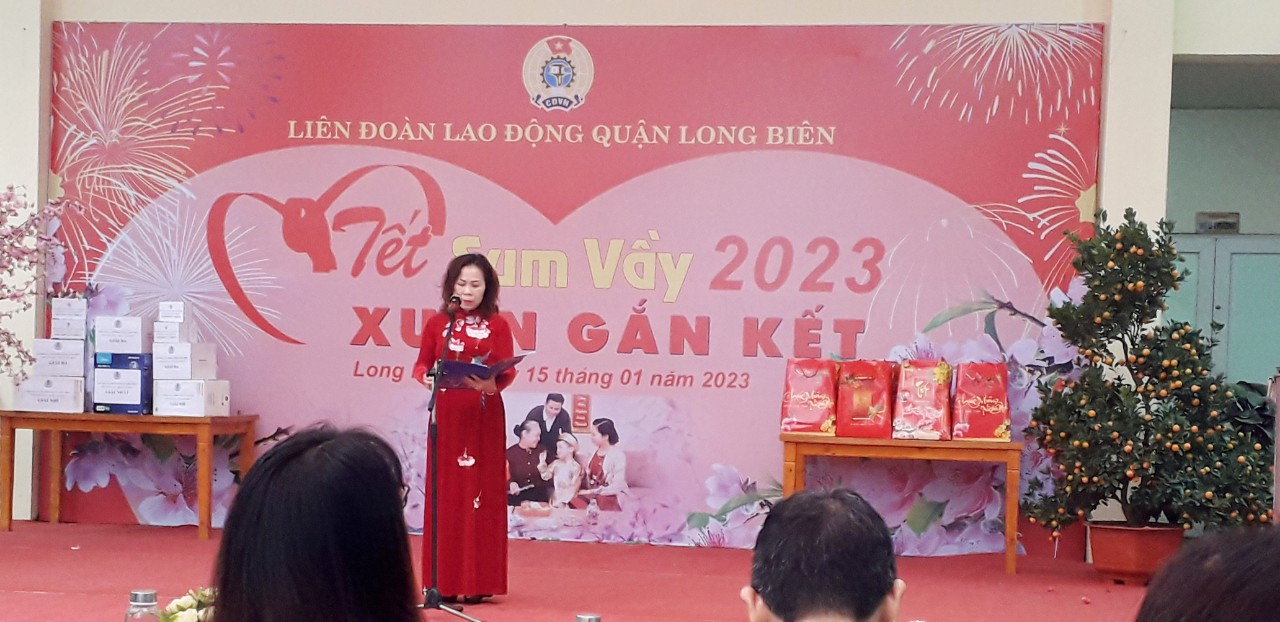 Chương trình “Tết Sum vầy” năm nay với chủ đề “Xuân gắn kết” do Liên đoàn lao động quận tổ chức tại trường mầm non Tràng An là hoạt động hướng về cơ sở và người lao động; nhằm chia sẻ, kết nối yêu thương, mang đến không khí vui tươi, ấm áp trước thềm Xuân mới Quý Mão, với mong muốn một mùa xuân tươi đẹp, bình an sẽ đến với mọi người, mọi nhà. Tại chương trình, bên cạnh những suất quà hỗ trợ, đoàn viên công nhân, viên chức, lao động quận đã sôi nổi, hào hứng với phần thi gói bánh chưng đến từ 3 đội thi. Thông qua phần thi, Ban Tổ chức mong muốn tăng thêm sự gắn kết, tinh thần đồng đội giữa các thành viên trong đội thi, tái hiện không gian Tết truyền thống của người Việt Nam, qua đó duy trì được nét văn hóa truyền thống rất đẹp của dân tộc Việt Nam. Chương trình đã trao vé xe “Chuyến xe nghĩa tình”, trao quà công nhân viên chức, người lao động có hoàn cảnh khó khăn, bốc thăm trúng thưởng.
