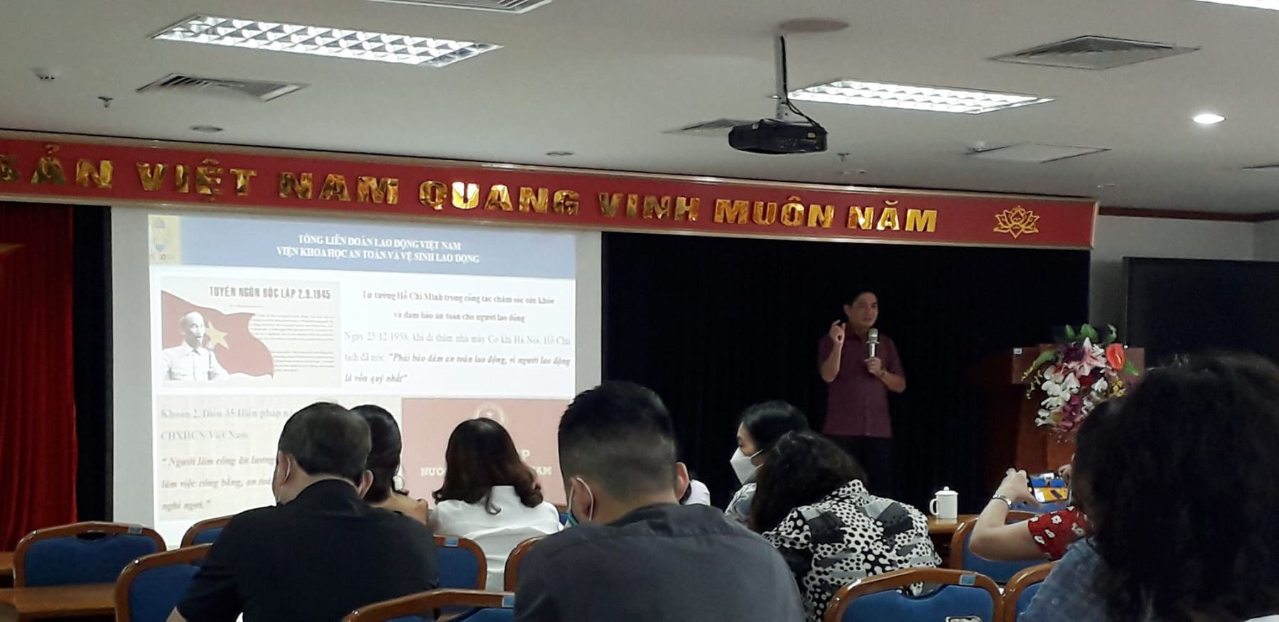 Bồi dưỡng nghiệp vụ an toàn vệ sinh lao động” tại Hội trường khu liên cơ Uỷ ban nhân dân quận Long Biên. Chiều ngày 19/5/2022 trường mầm non Long Biên đã tham gia Lớp Bồi dưỡng an toàn vệ sinh lao động tại Giảng đường Trung tâm chính trị Quận Long Biên, do Tiến sĩ Nguyễn Anh Thơ làm giảng viên. Đ/c Trần Thu Thủy - Chủ tịch công đoàn trường đã tham gia lơp bồi dưỡng nghiêm túc.