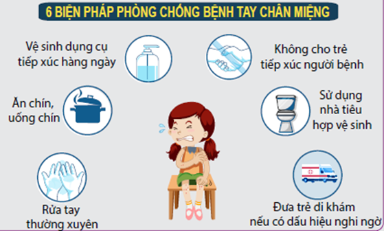 - Rửa tay thường xuyên bằng xà phòng dưới vòi nước chảy nhiều lần trong ngày (cả người lớn và trẻ em), đặc biệt trước khi chế biến thức ăn, trước khi ăn/cho trẻ ăn, trước khi bế ẵm trẻ, sau khi đi vệ sinh, sau khi thay tã và làm vệ sinh cho trẻ.