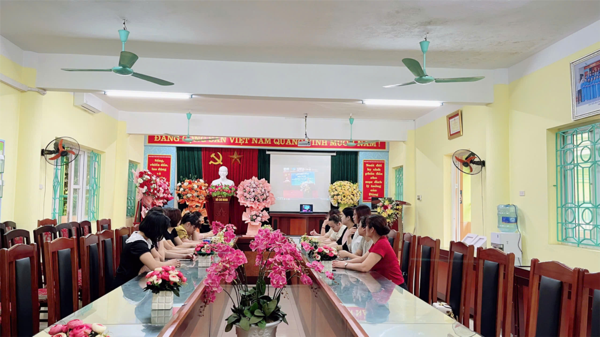 Sáng ngày 12/4/2025 tại điểm cầu nhà trường, 100% các đ/c cán bộ, đảng viên chi bộ trường mầm non Long Biên đã có mặt đầy đủ, đúng giờ để tham gia học tập chuyên đề năm 2025 và nghe thời sự Quý II/2025 theo hình thức trực tuyến qua phần mềm Zoom.