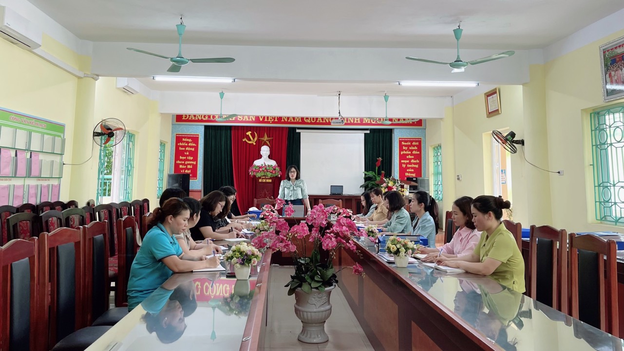 Sau khi nghe báo cáo kết quả kiểm tra của các thành viên và ý kiến của nhà trường, đồng chí Nguyễn Thị Hồng Vân- Trưởng đoàn đã ghi nhận những kết quả đạt được của nhà trường trong thời gian qua và có những chỉ đạo, định hướng để nhà trường tiếp tục nâng cao chất lượng chăm sóc giáo dục trẻ trong thời gian tiếp theo. Đ/c Đỗ Thị Thanh Nhâm- HT nhà trường đã tiếp thu, trân trọng ghi nhận những ý kiến chỉ đạo, tư vấn, định hướng của Đoàn kiểm tra, trong thời gian tới sẽ tiếp tục phát huy những điểm mạnh, khắc phục 1 số mặt còn tồn tại để xây dựng nhà trường ngày càng vững mạnh, phát triển.