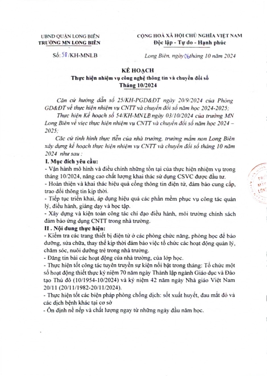 KH thực hiện CNTT tháng 10.2024