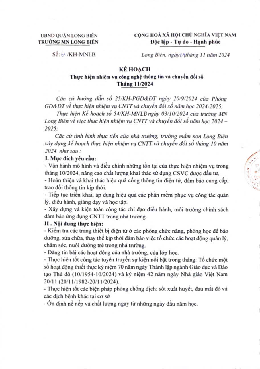 Kh thực hiện nhiệm vụ cntt và chuyển đổi số t11/2024