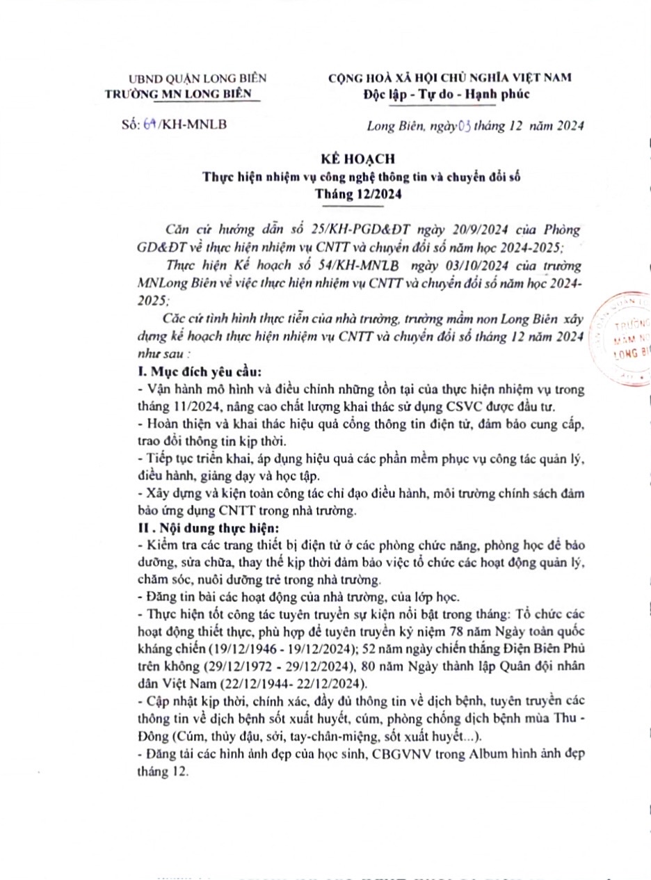 Kh thực hiện nhiệm vụ cntt và chuyển đổi số T12/2024