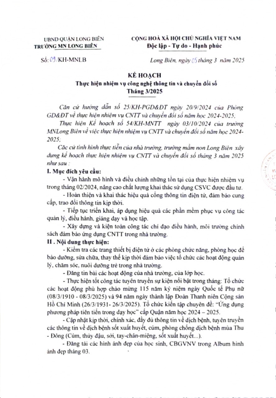 Kh thực hiện nhiệm vụ cntt và chuyển đổi số t3/2025