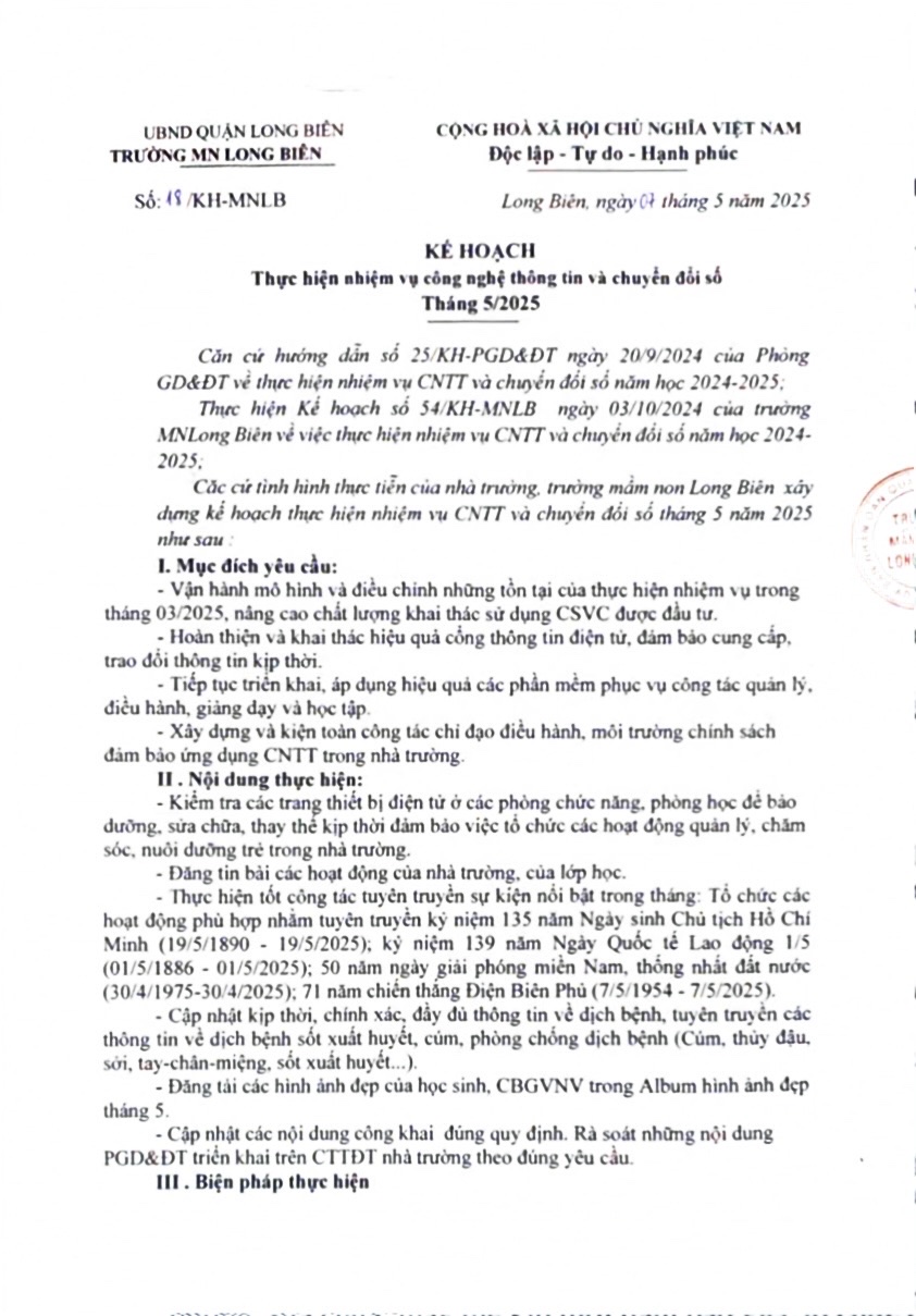 Kh thực hiện nhiệm vụ cntt và chuyển đổi số t5/2025
