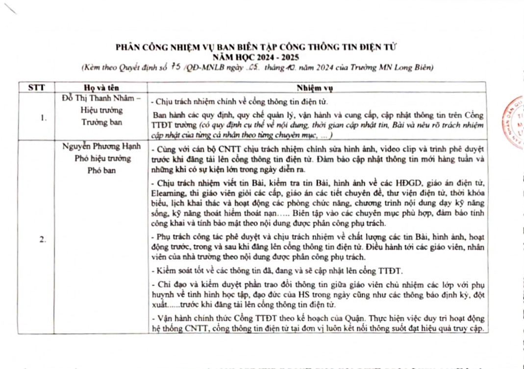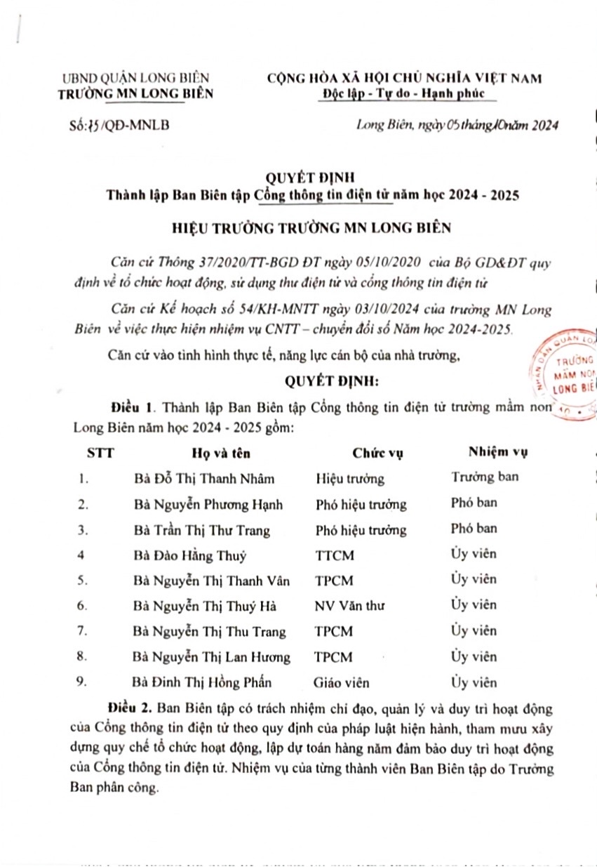 QĐ thành lập Ban biên tập cổng thông tin điện tử năm học 2024 - 2025